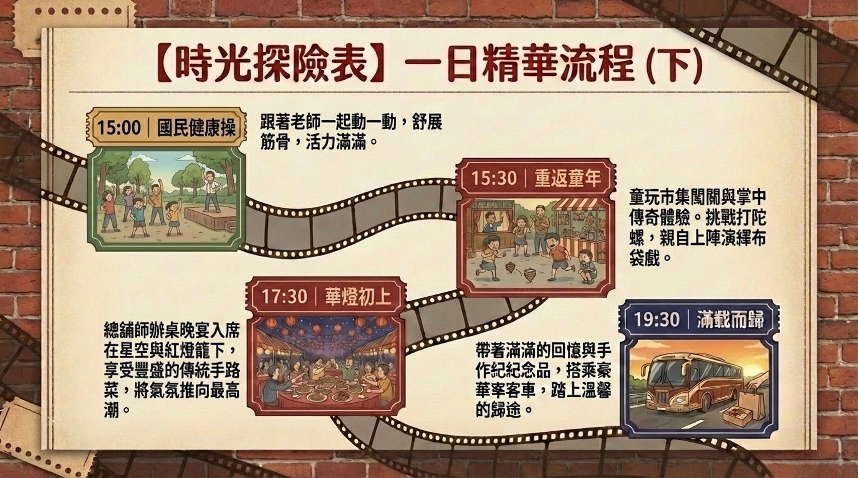 對爸媽來說:這或許變成一場集體回憶的復刻。當妳看到孩子坐在圓桌旁吃辦桌、玩著妳小時候玩的鬼抓人,同時妳不僅是家長,也會發現那個躲在心裡的小女孩、小男孩也一起跟著放假了。這是一場跨世代的對話。