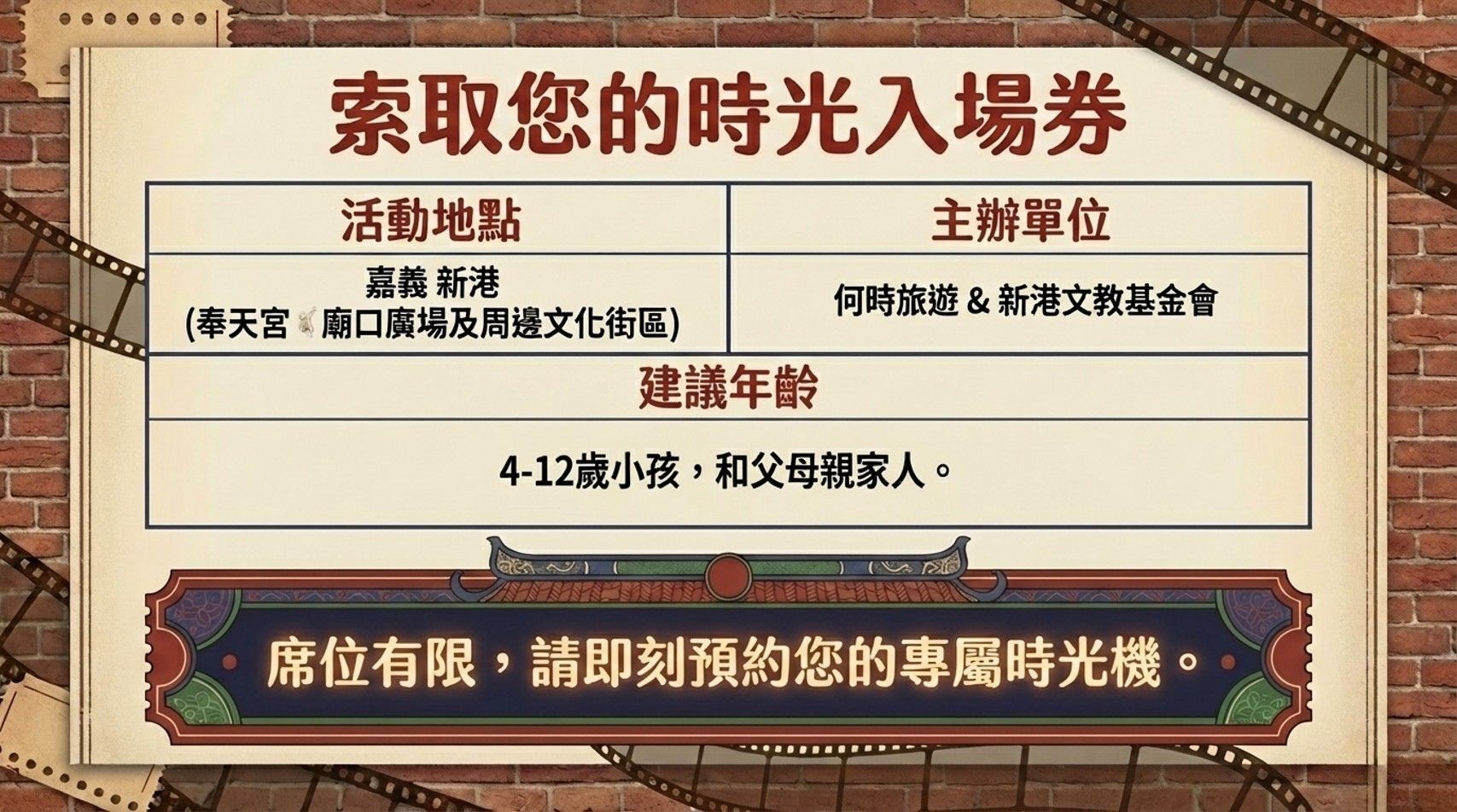 名額有限!讓我們跟著何時一起在廟口,為孩子創造一個難能可貴的童年回憶。
