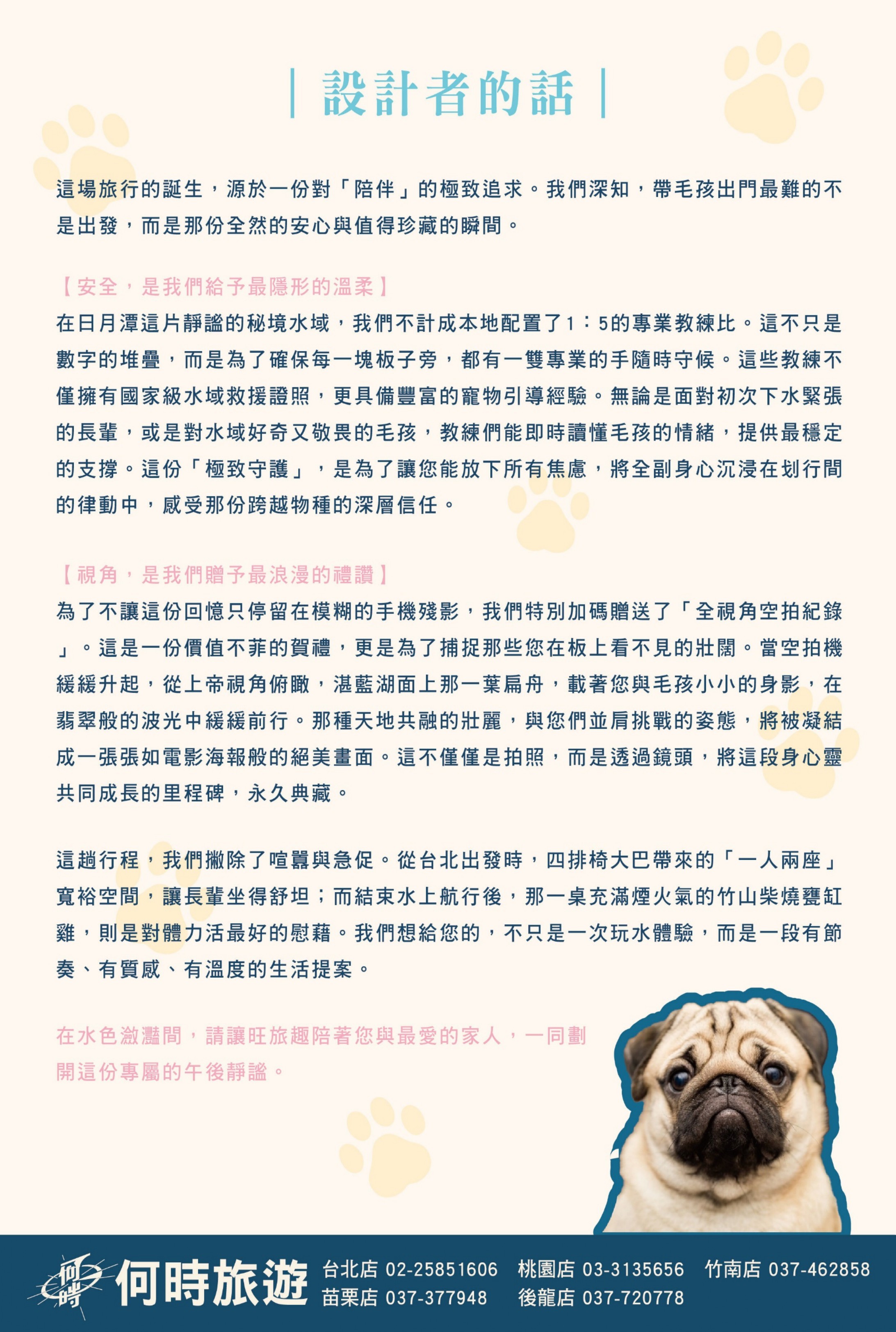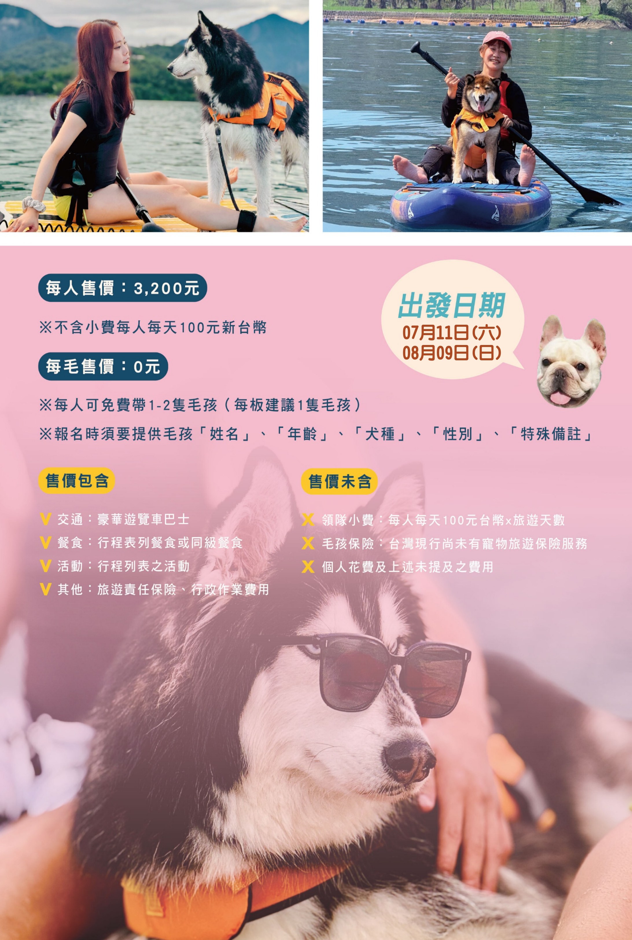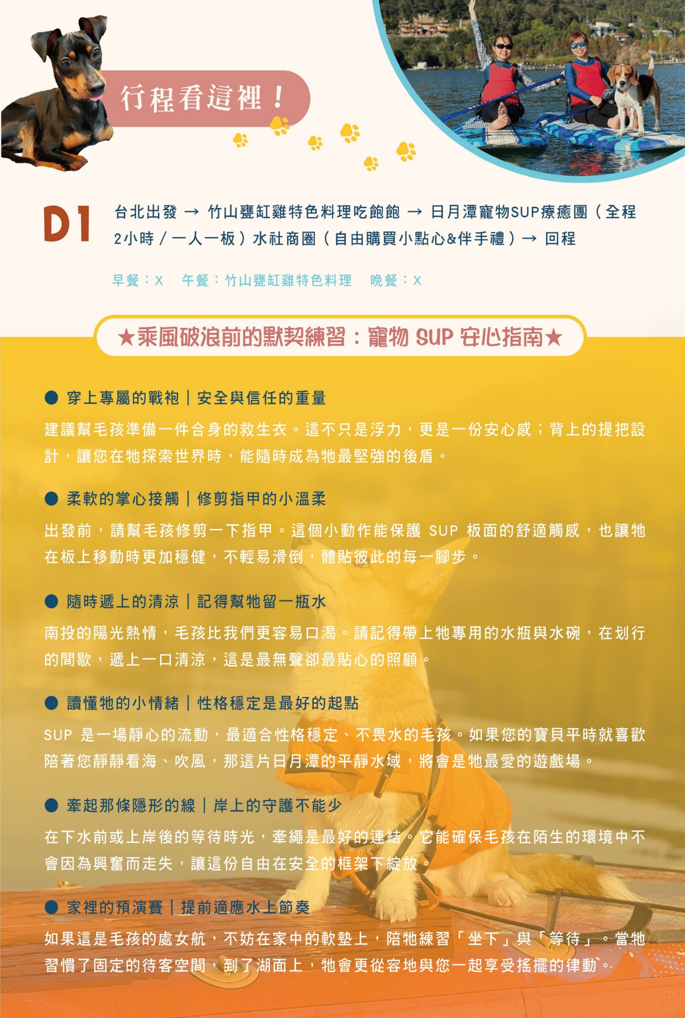旺旅趣 x 萌寵SUP上板|南投竹香與漿板上的午後時光『寵物旅遊』 | 8 | NT$3,200 | 可報名 |