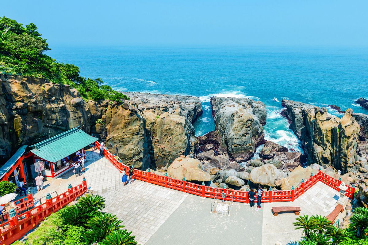 隱身於日南海岸懸崖峭壁的天然海蝕洞窟中,鵜戶神宮是何時旅遊極力推薦的南九州必訪奇景!伴隨太平洋驚濤駭浪,朱紅色御本殿更顯神秘莊嚴。