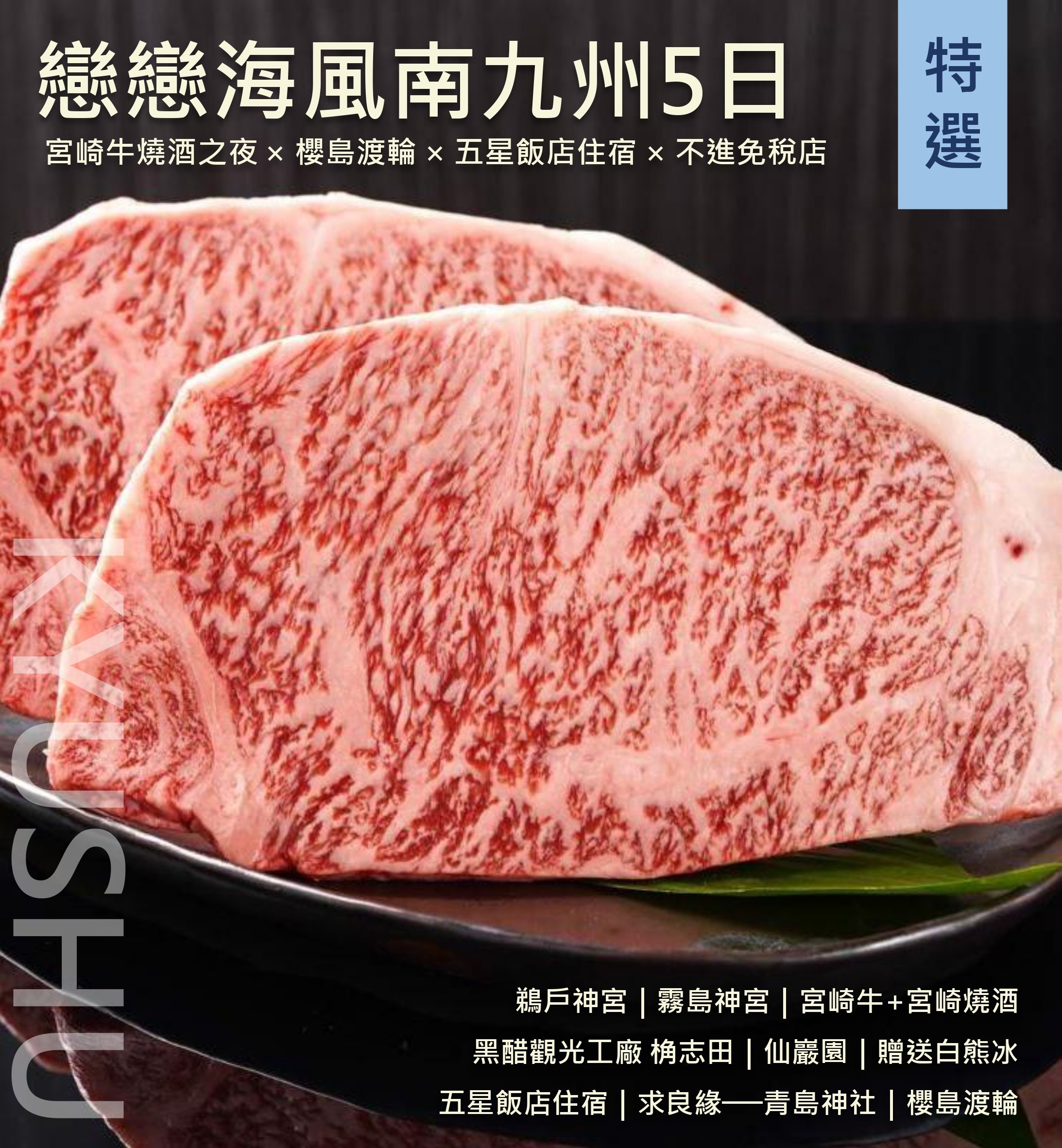 A: 這是何時旅遊給您的專屬見面禮!第一天搭機往往最令人疲憊,我們希望用最震撼的味蕾饗宴為旅程破題。宮崎牛是日本和牛奧運的常勝軍,我們重本安排頂級套餐搭配在地燒酒。讓您抵達當晚,就能以入口即化的極致美味與微醺的放鬆,徹底洗去搭機的辛勞,大聲宣示一場美好假期的正式開始!
