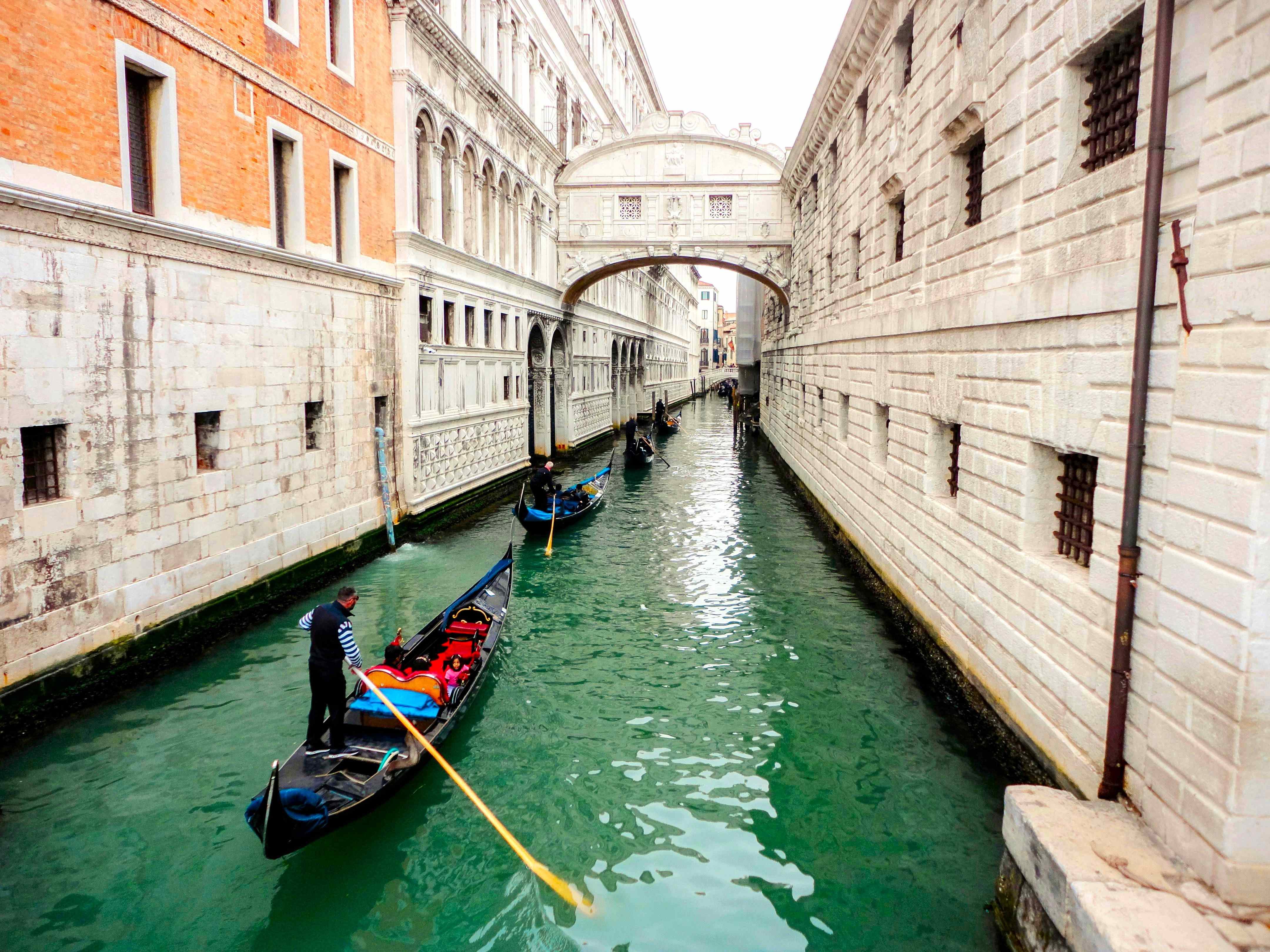 嘆息橋是一座建於 17 世紀的巴洛克式白石廊橋,橫跨於狹窄的宮殿水道上。橋樑兩端連接著總督宮的審訊室與威尼斯監獄。相傳昔日死囚被定罪後,在押送入監途中會經過這座密閉的橋樑,當他們透過石雕窗花最後一次望向美麗的水都時,總會發出絕望的嘆息,因而得名。