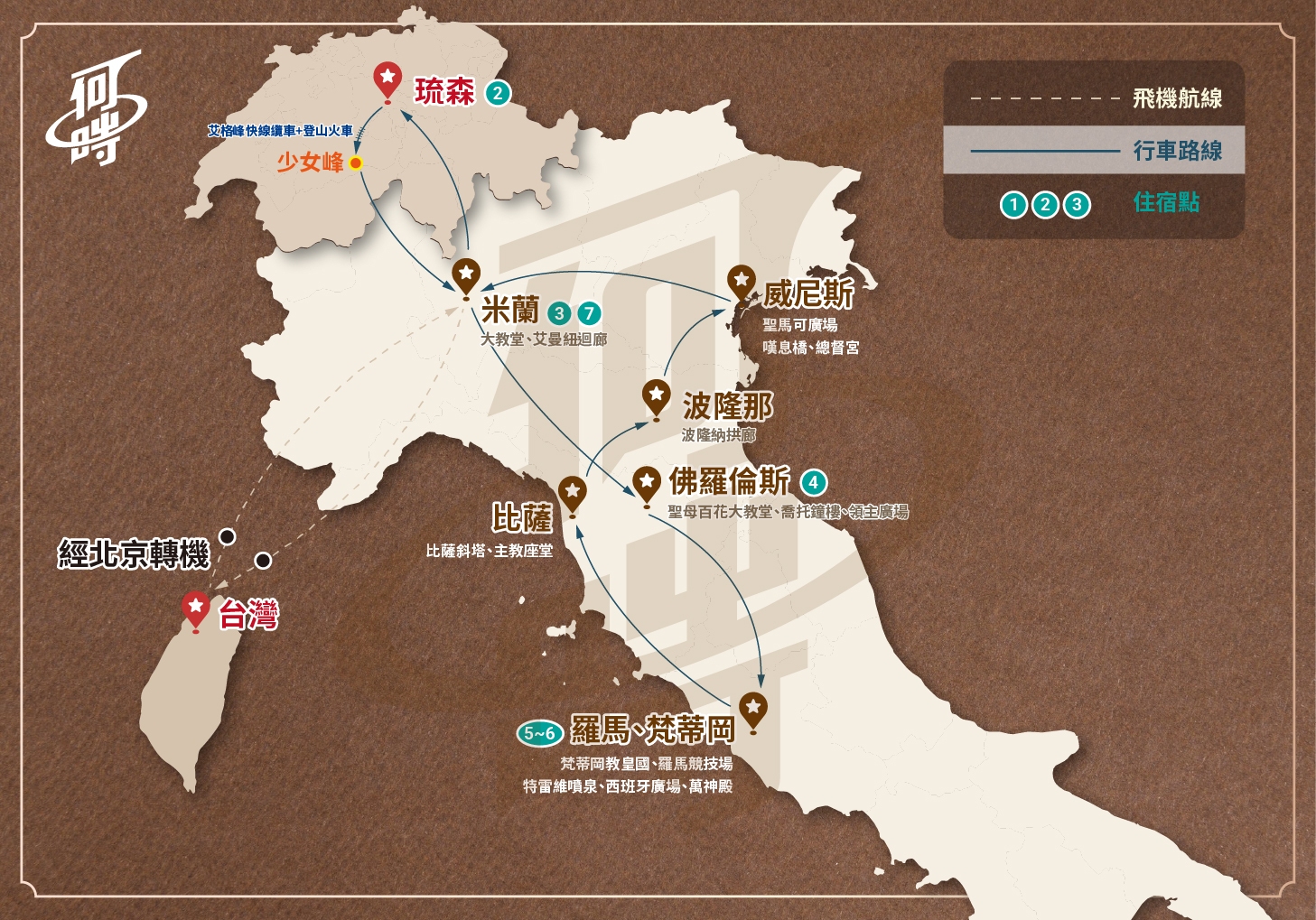 即將迎接我們的,是瑞士阿爾卑斯山的壯闊雪峰與純淨大自然,以及義大利底蘊深厚的文藝復興藝術與古羅馬建築。我們將捨棄匆忙的步調,準備以從容的節奏,親自走入明信片與電影中的經典場景。