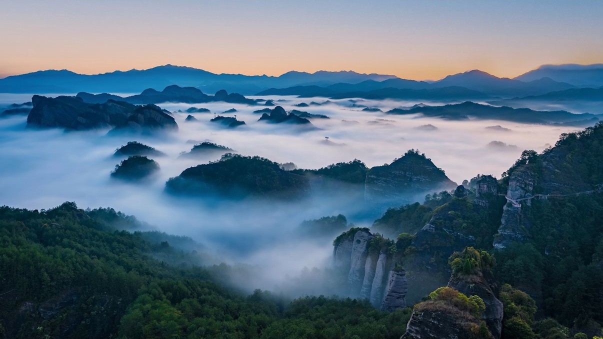 位於福建連城,以其雄奇險峻的丹霞地貌聞名,被譽為「客家神山」。山體造型千姿百態,其中最著名的「生命根」與「生命門」石景,鬼斧神工,令人嘆為觀止。攀登冠豸山,遊客不僅能飽覽丹霞絕壁的壯麗景觀,還能深入體驗濃厚的客家文化氛圍。這裡的步道錯落有致,山頂視野遼闊,是自然景觀與人文歷史完美結合的旅遊勝地,深受登山與攝影愛好者青睞。