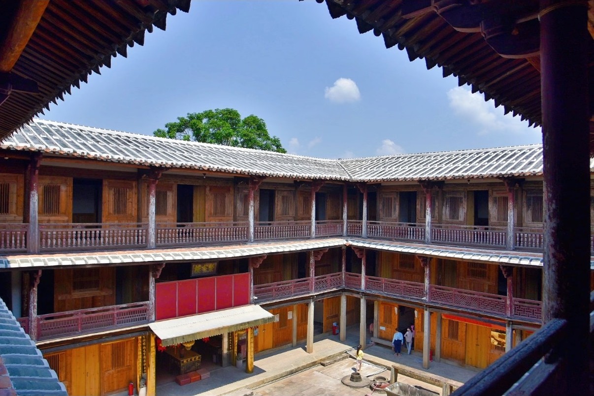 為宮殿式方形土樓,依山而建,遠觀氣勢宏偉如布達拉宮。由清代翰林巫宜福依虎形地勢設計,象徵猛虎下山之勢。建於1834年,樓高約15米,占地廣大,內部雕刻精美,雖歷經破壞仍具特色。樓內設雙水井與天窗,兼具實用與巧思;中堂樓閣與重簷設計層次分明,景觀獨特。至今仍有住戶,人才輩出,展現深厚人文底蘊。