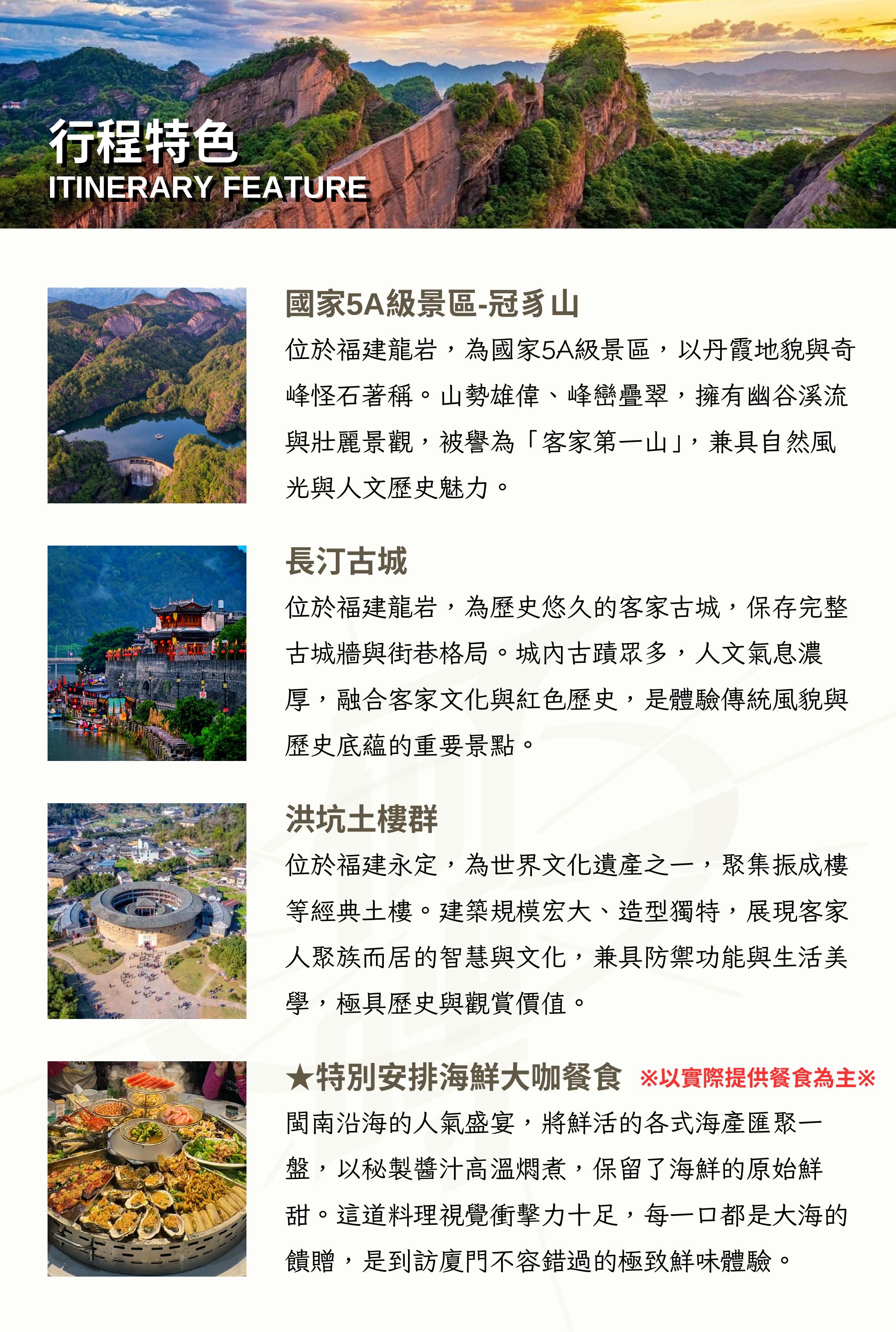 2026/09/17(四) | 台北-松山機場出發 【母親節買一送一】限定閩西世遺人文5日|冠豸山無痛爬山、最美山城長汀古城、世界遺產洪坑土樓群、閩西美食、無購物、無自費機位 20 候補0 已售12 可售7 |