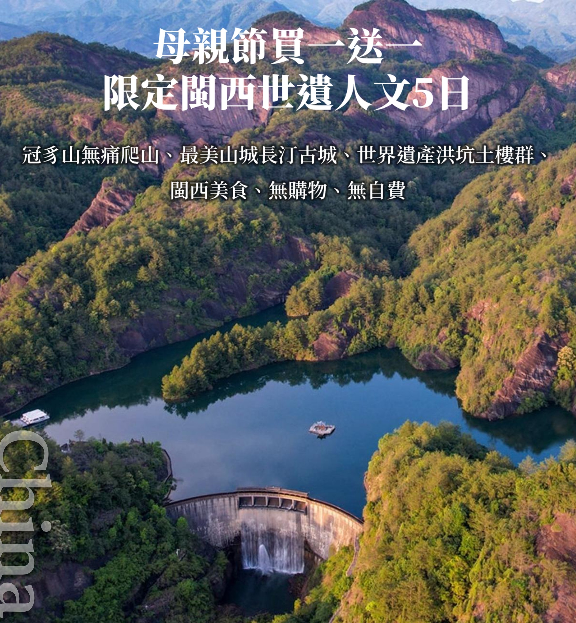 2026/09/10(四) | 台北-松山機場出發 【母親節買一送一】限定閩西世遺人文5日|冠豸山無痛爬山、最美山城長汀古城、世界遺產洪坑土樓群、閩西美食、無購物、無自費機位 20 候補0 已售0 可售19 |