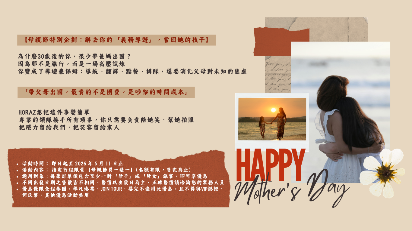 6、為了保障旅客安全與行程順暢,行程期間不接受脫隊行為。