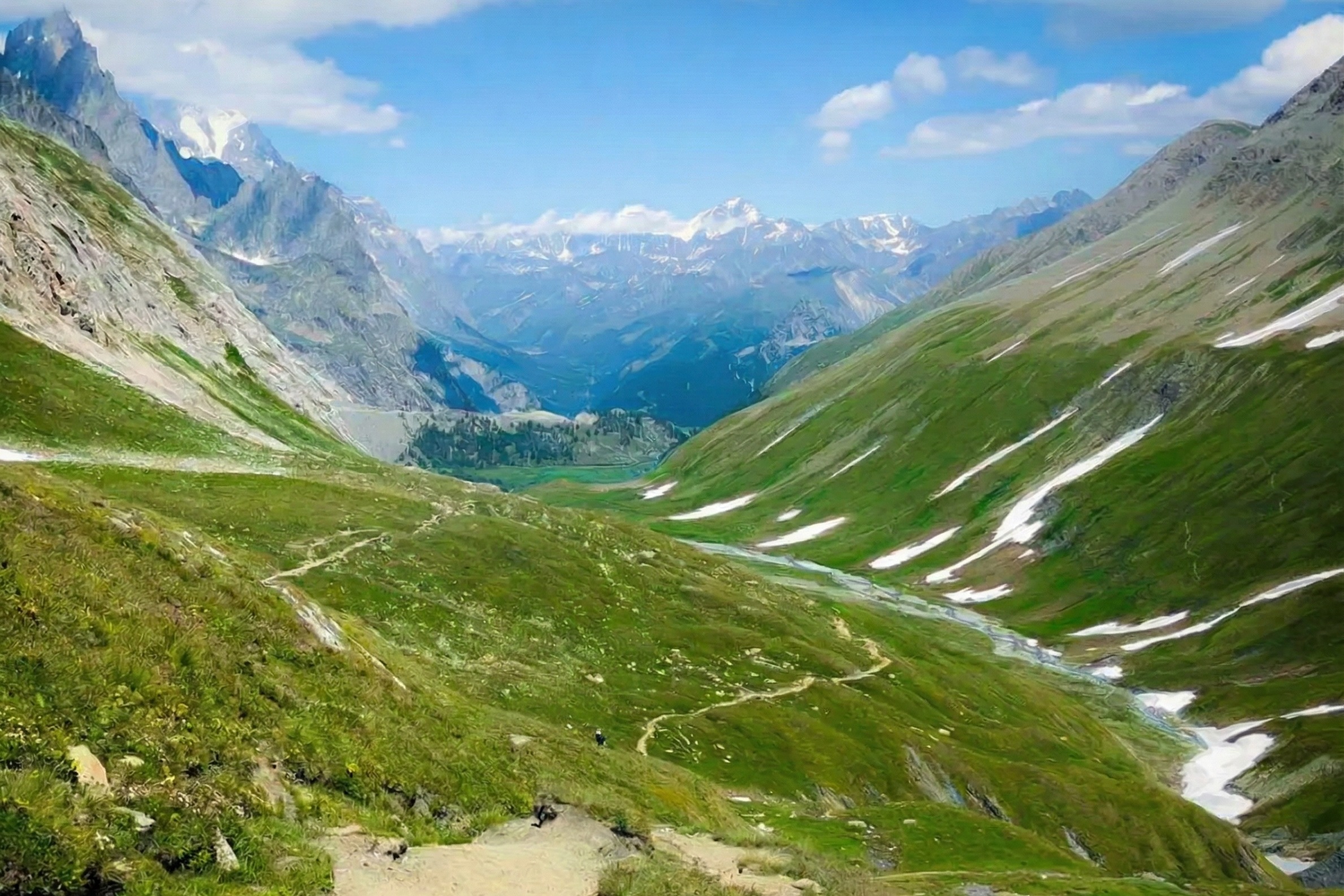 走進義大利段的費雷谷,彷彿踏入一幅氣勢磅礴的風景畫!這裡有著阿爾卑斯山脈最震撼的南壁景觀,巍峨的大喬拉斯峰近在咫尺。沿途綠意盎然、野花遍地,伴隨迷人的義式高山風情,讓您的每一步都充滿驚喜與讚嘆。