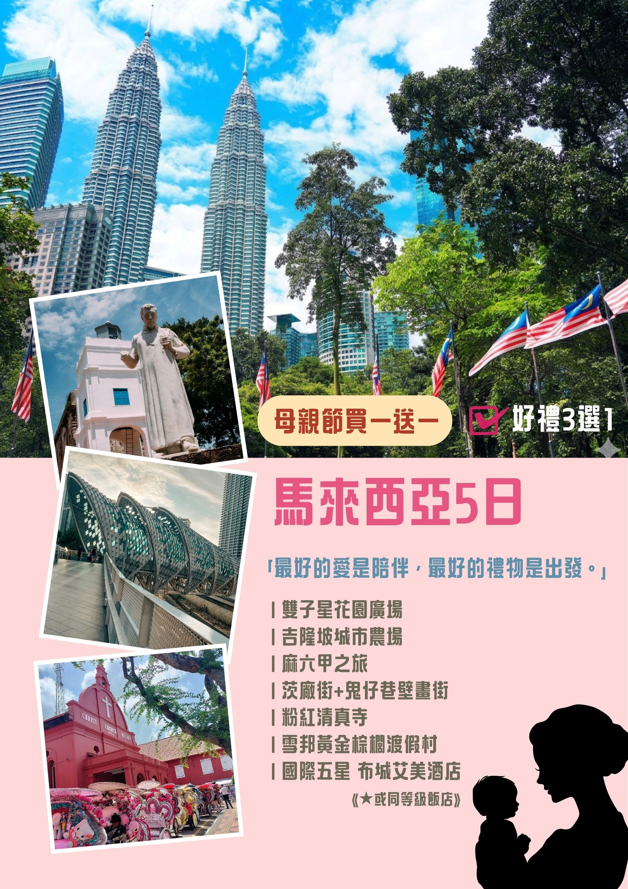 【母親節買一送一】馬來西亞5日|你與媽媽搭長榮、住雪邦棕櫚海上屋、保證國際品牌五星、道地肉骨茶娘惹餐、三輪車慢遊古城