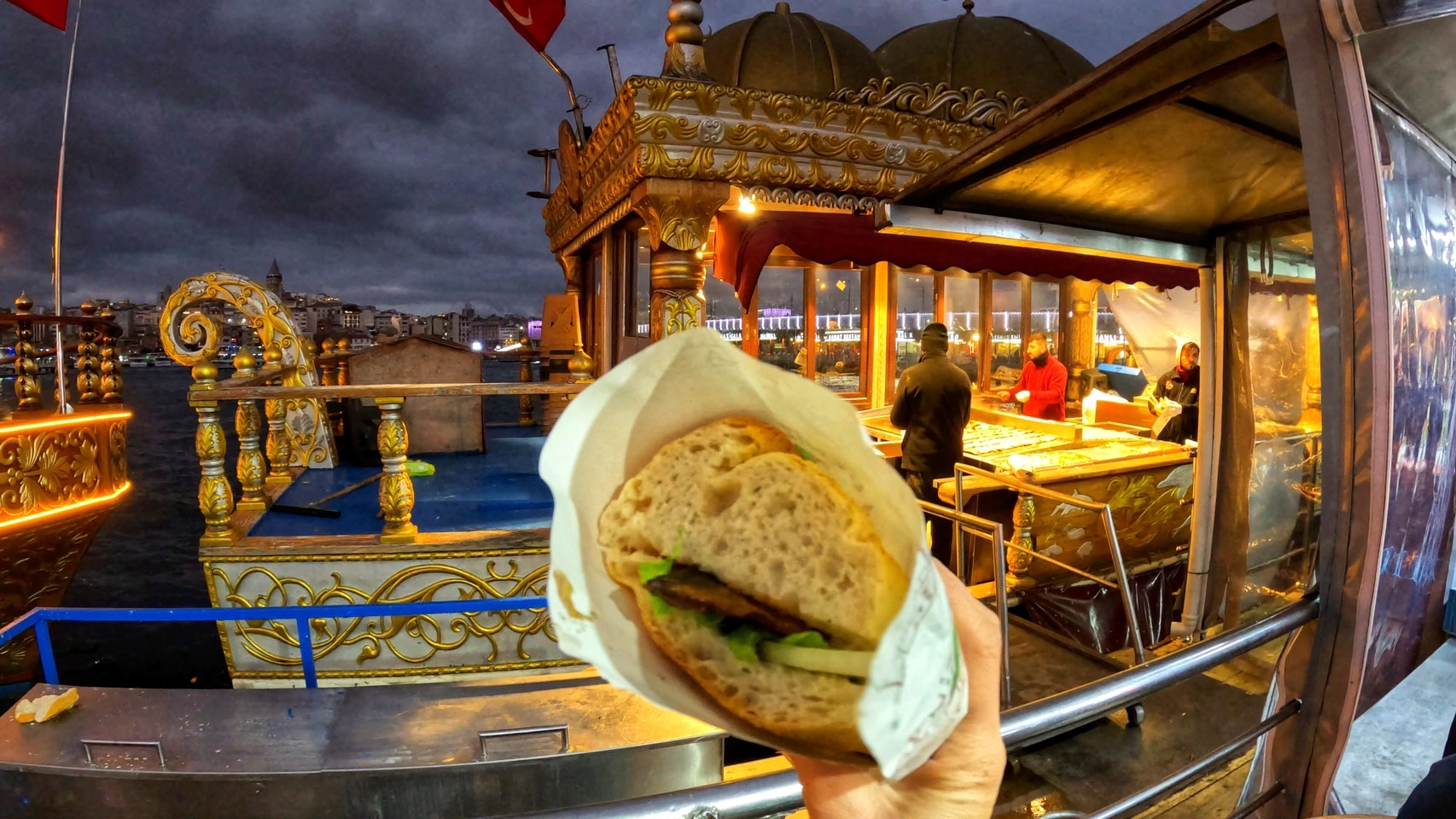 而且很酷的是,停在博斯普魯斯海峽旁的一艘艘漁船就是一個店家,船上就是廚房,靠著岸,岸邊就是內用區或櫃台,從船上做好餐點傳遞給岸上工作人員就可以出餐。